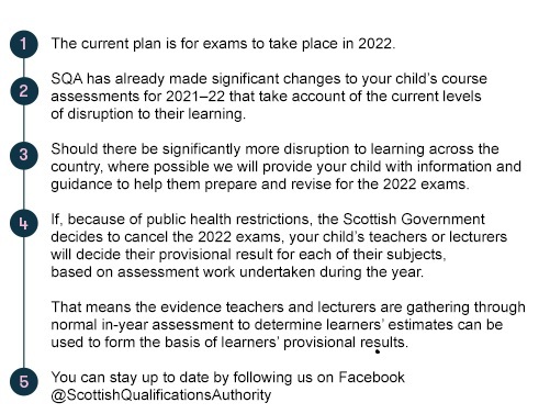 We want to take this opportunity to reassure you that plans are in place to support your child through their National 5, Higher, and Advanced Higher course assessments in 2021-22.